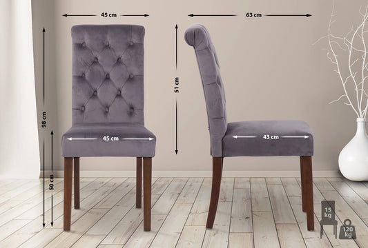 In And OutdoorMatch Eetkamerstoel Dillon - Grijs - Stof - Hoge kwaliteit bekleding - Fluwelen Eetkamerstoel - Stijlvolle uitstraling