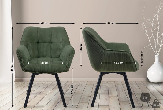 In And OutdoorMatch Eetkamerstoel Haylee - Stof - Hoge kwaliteit bekleding - Corduroy Eetkamerstoel - Stijlvol en eigentijds uiterlijk