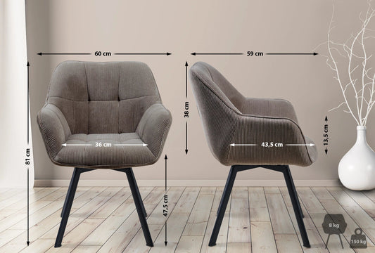 In And OutdoorMatch Eetkamerstoel Bobbi - Stof - Hoge kwaliteit bekleding - Corduroy Eetkamerstoel - Stijlvolle en eigentijdse uitstraling