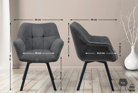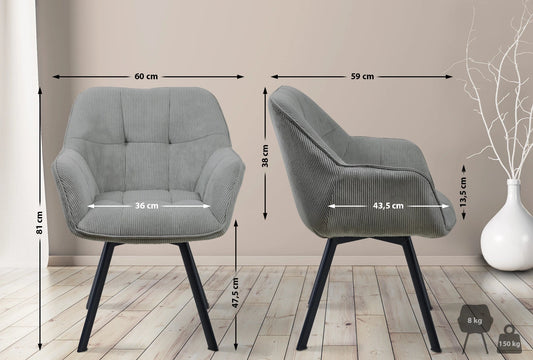 In And OutdoorMatch Eetkamerstoel Sebastian - Grijs - Stof - Hoge kwaliteit bekleding - Corduroy Eetkamerstoel - Stijlvolle en eigentijdse uitstraling