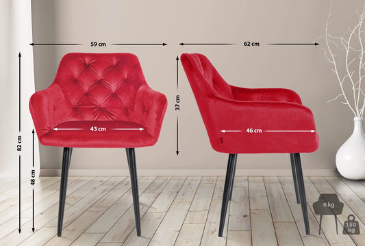 In And OutdoorMatch Eetkamerstoelen Madison - Rood - Set van 2 - Fluweel - Hoogwaardige bekleding - Stijlvolle eetkamerstoelen - Luxe uitstraling