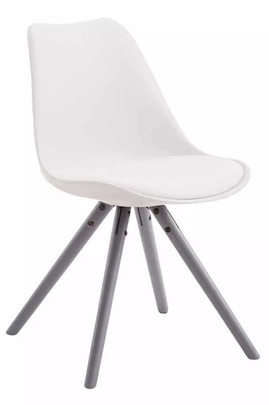 In And OutdoorMatch Bezoekersstoel Bobbie - Eetkamerstoel - Grijs kunstleer - Witte poten - Set van 1 - Zithoogte 48 cm - Deluxe