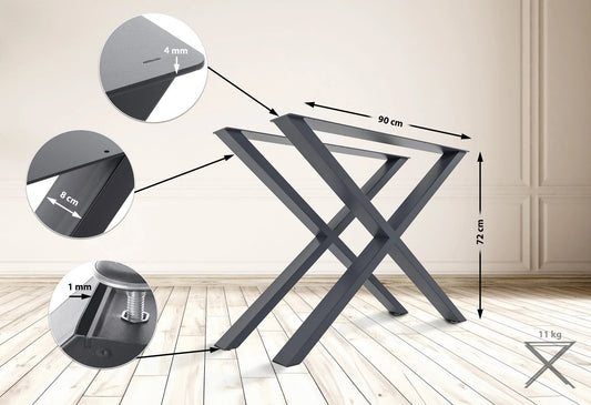 In And OutdoorMatch Tafelpoten Rene - 2x - X-vormig tafelframe - Stalen tafelpoten - Zwarte tafelpoten - Industriële stijl - M