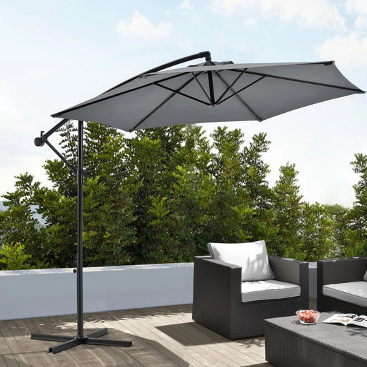 In And OutdoorMatch Zwevende Parasol Addie - Staal - Ø 270x245 cm - Incl. Grijze basis - Waterafstotend - Luxe uitstraling
