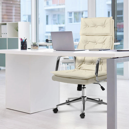 In And OutdoorMatch Bureaustoel Franziska - Gebroken Wit - Echt leer - Hoogwaardige bekleding - Comfortabel gevoerd - Luxe uitstraling