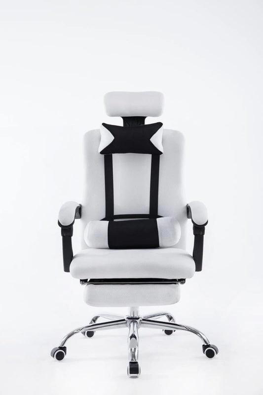 In And OutdoorMatch Bureaustoel Serina - Wit en Zwart - Voetensteun - Stof - Hoogwaardige bekleding - Luxe bureaustoel - Exclusieve uitstraling