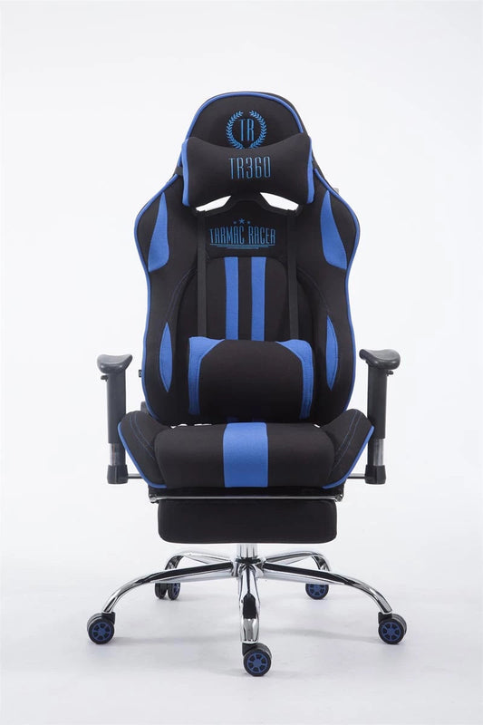 In And OutdoorMatch Bureaustoel Ely - Zwart en Blauw - Voetensteun - Stof - Hoogwaardige bekleding - Exclusieve bureaustoel - Sportieve look