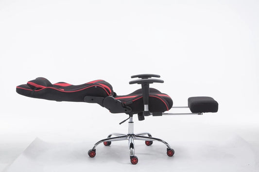 In And OutdoorMatch Bureaustoel Merla - Zwart en Rood - Voetensteun - Stof - Hoogwaardige bekleding - Exclusieve bureaustoel - Sportieve look