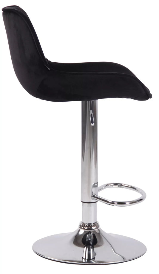 In And OutdoorMatch Luxe Barkruk Esther - Zwart - Chroom - Luxe Design - Rugleuning - Voetensteun - Voor Keuken en Bar - Gestoffeerde Zitting - Fluweel