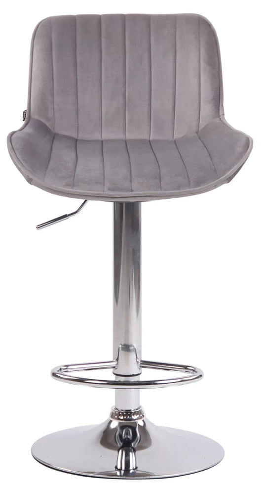 In And OutdoorMatch Luxe Barkruk Kadin - Grijs - Chroom - Luxe Design - Rugleuning - Voetensteun - Voor Keuken en Bar - Gestoffeerde Zitting - Fluweel