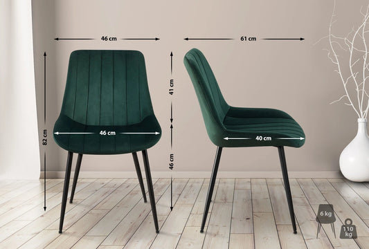 In And OutdoorMatch Eetkamerstoel Lyn - Groen - Eetkamerstoel - Fluweel - Hoge kwaliteit bekleding - Decoratieve stoel - Stijlvolle eetkamerstoel
