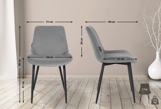 In And OutdoorMatch Eetkamerstoel Carolina - Grijs - Fluweel - Hoge kwaliteit bekleding - Klassieke eetkamerstoel - Stijlvolle uitstraling