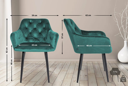 In And OutdoorMatch Eetkamerstoel Anastacio - Groen - Fluweel - Hoogwaardige Bekleding - Stijlvolle Eetkamerstoel - Vintage Look