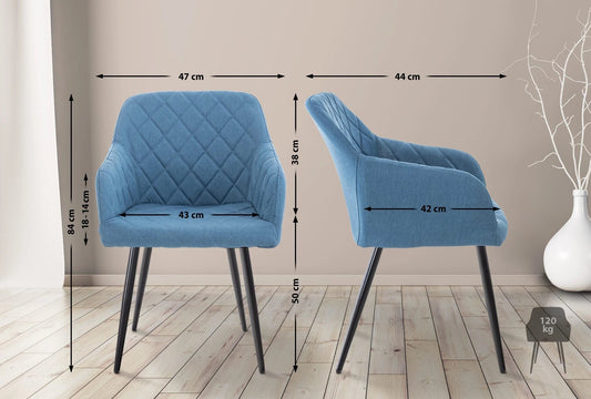 In And OutdoorMatch Eetkamerstoel Dulce - Blauw - Set van 2 - Stof - Hoge kwaliteit bekleding - Stijlvolle eetkamerstoel - Moderne look