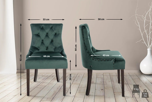 In And OutdoorMatch Eetkamerstoel Carl - Groen - Fluweel - Hoge kwaliteit bekleding - Tijdloze eetkamerstoel - Antiek uiterlijk