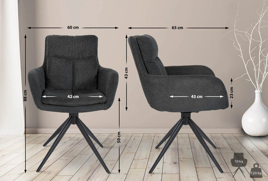 In And OutdoorMatch Eetkamerstoel Gustavo - Donkergrijs - Stof - Met Armleuning - Hoogwaardige Bekleding - Stijlvolle Eetkamerstoel - Deluxe Look