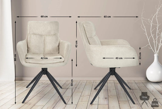 In And OutdoorMatch Eetkamerstoel Kai - Crème - Stof - Met Armleuning - Hoogwaardige Bekleding - Stijlvolle Eetkamerstoel - Deluxe Look