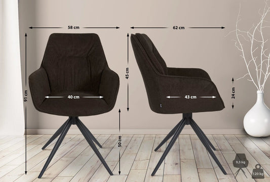 In And OutdoorMatch Eetkamerstoel Jop - Bruin - Stof - Met Armleuning - Hoogwaardige Bekleding - Stijlvolle Eetkamerstoel - Deluxe Look