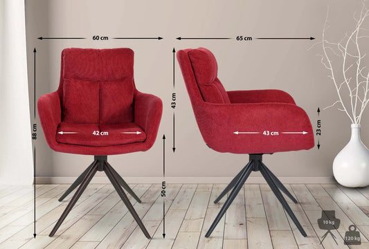 In And OutdoorMatch Eetkamerstoel Sonya - Rood - Stof - Met Armleuning - Hoogwaardige Bekleding - Stijlvolle Eetkamerstoel - Deluxe Look
