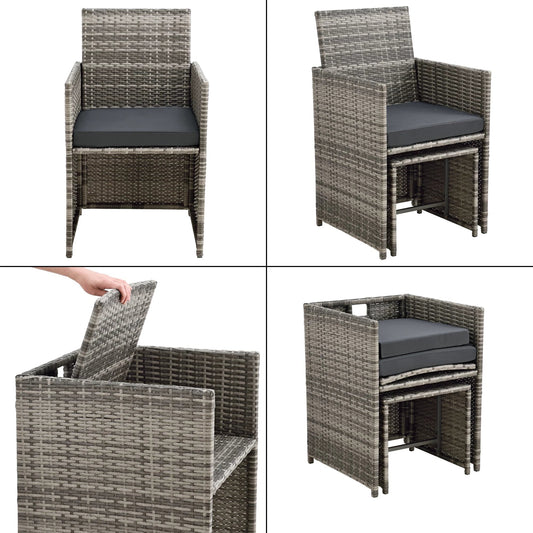 In And OutdoorMatch Elegante Tuinset Petery - 11-delig - Loungeset - Gemêleerd Grijs - Staal - Tempered Glass - Stof - Weerbestendig -