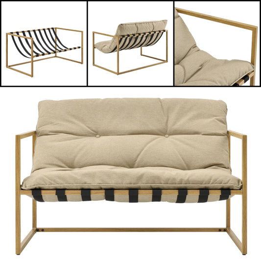 In And OutdoorMatch Tuinset Alexis - 4-delig - Tafel - Bank - 2x stoelen - Houtkleurig en Kaki Bruin - Luxe Look