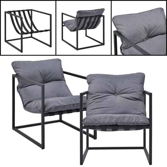 In And OutdoorMatch Tuinset Retta - 4-delig - Loungeset - Donkergrijs en Zwart - Staal, Glas en Stof - Stijlvolle uitstraling