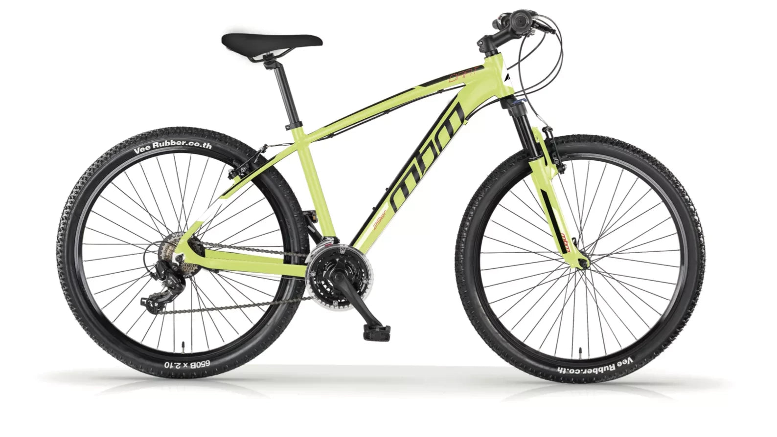 Model 29, oversized aluminium frame, verende voorvork, 18 versnellingen Shimano Gripshift, aluminium V-brakes, dubbelwandige velgen, 29 x 2.10 banden.