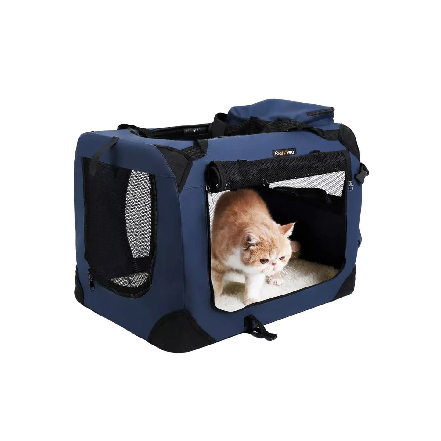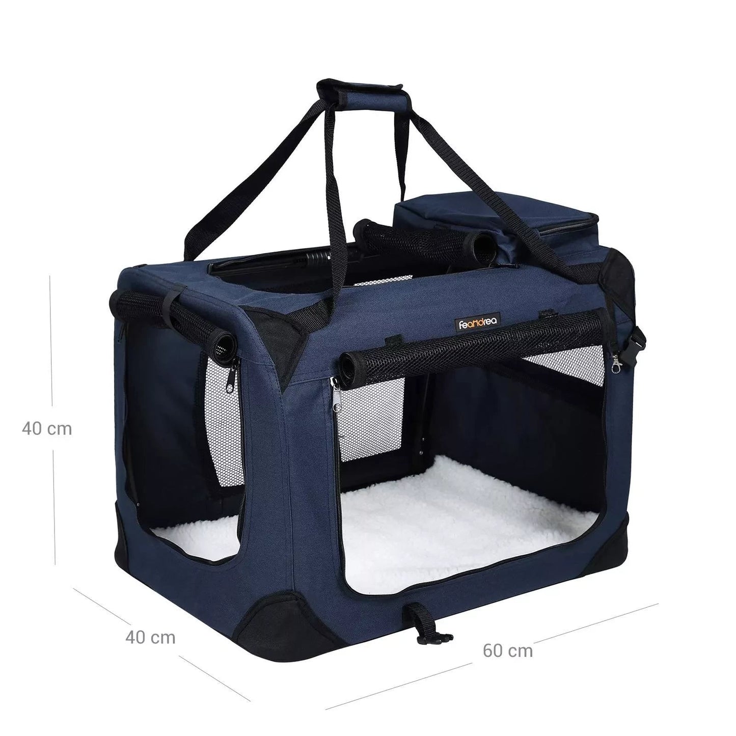 Productdetails: - Afmetingen: 60 x 40 x 40 cm - Voordeur: 44 x 29 cm - Zijdeur: 27 x 30 cm - Bovendeur: 35 x 22 cm - Kleur: beige Leveringsomvang: - 1 x transportdoos - 1 x handleiding (Duits, Engels, Frans, Italiaans, Spaans) Opmerkingen: - Verwijder de halsband van uw hond voordat u hem de reismand laat gebruiken. Verstikkingsgevaar! - Meet uw huisdier vóór aankoop op om te bepalen of deze hondenbench bij hem past. - Laat uw hond langzaam aan de hondenbench acclimatiseren. Sluit hem in eerste instantie niet voor langere tijd in de bench op. Anders kan uw hond reageren door te krabben of te bijten.