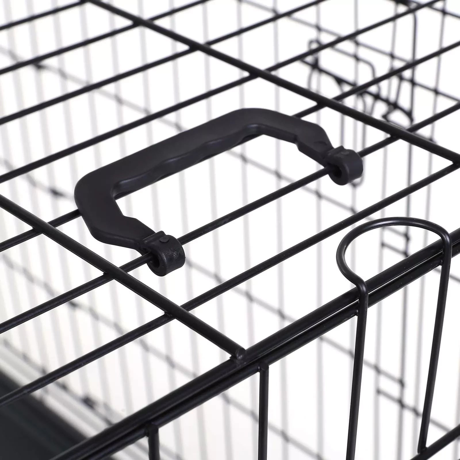 HOGE KWALITEIT: De hondenbench is gelast met ijzerdraad. Deze hondenbench is duurzaam en roestwerend. De afmetingen zijn 106 x 70 x 77,5 cm (L x B x H). FIJNE AFWERKING: Afgeronde hoeken en randen voorkomen verwondingen aan uw huisdier en uzelf. PERFECT ONTWERP: Dankzij de tweedeursopstelling kan een hond gemakkelijk in en uit deze kooi stappen. Twee L-vormige bouten vergrendelen elke deur veilig. Dankzij het ingebouwde handvat kan deze kooi gemakkelijk met de hand worden gedragen. PLASTIC LADE: De plastic lade aan de onderkant kan worden verwijderd om schoon te maken. OPVOUWBARE STRUCTUUR: Door de opvouwbare structuur neemt deze dierendraagtas thuis en op reis weinig ruimte in beslag.